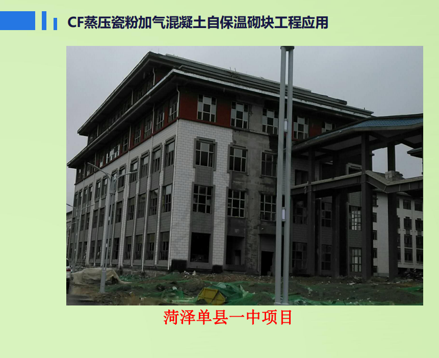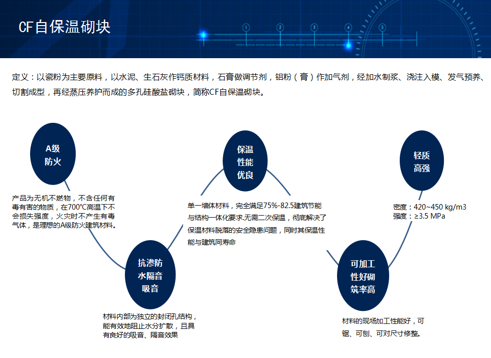 質(zhì)量輕、強(qiáng)度高、導(dǎo)熱系數(shù)低、A級(jí)防火、干燥收縮值小、抗凍性能好、與建筑同壽命等特點(diǎn),作為單一的墻體材料,不用再做二次保溫,完全滿足75%建筑節(jié)能與結(jié)構(gòu)一體化要求。
